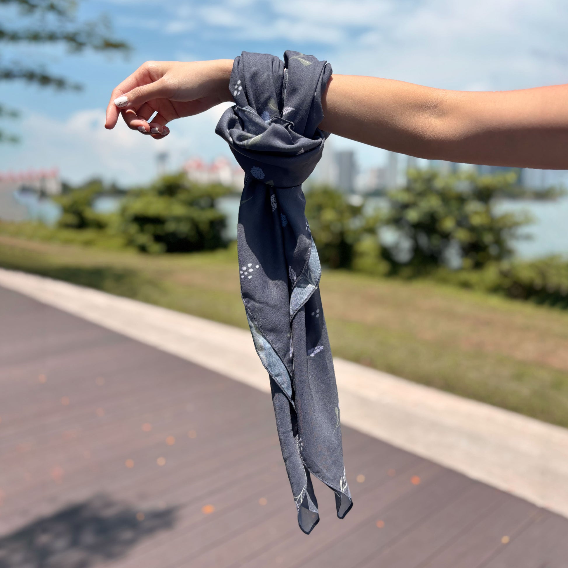 An elegant layering piece that drapes beautifully over any outfit. Crafted from soft, lightweight cotton, it’s adorned with delicate wildflowers on a dark grey base, versatile for breezy days and cool evenings alike.