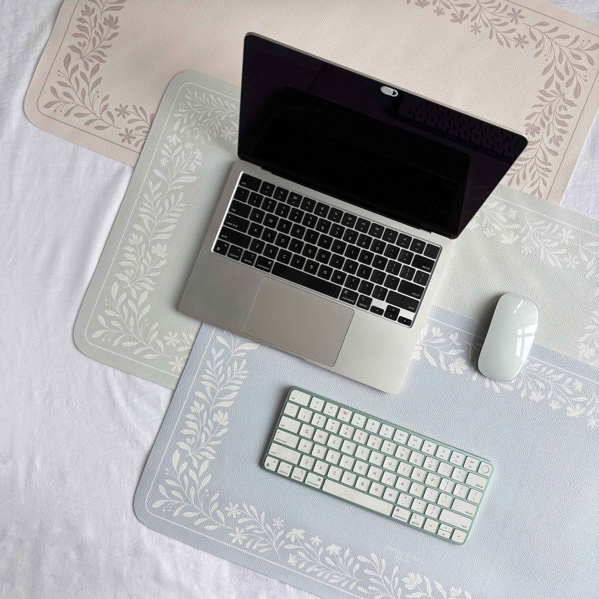 Transform your desk into a blooming sanctuary with the Garden Fables Desk Pad. Crafted from pebbled PU leather and bordered with intricate florals against light pastel colours, it’s as functional as it is beautiful.